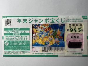 「年末ジャンボ宝くじ」買いました! その他 X Facebook はてブ LINE Pinterest コピー 2022.11.222025.11.19 今日は「年末ジャンボ宝くじ」の発売初日! 私も約5年ぶりに日本一よく当たると言われている「西銀座チャンスセンターの1番窓口」で買いました。 当たる確率は限りなく0に近いですが、買わないと当たりませんからね。 とりあえずこれで12月31日までは夢が見られます😊