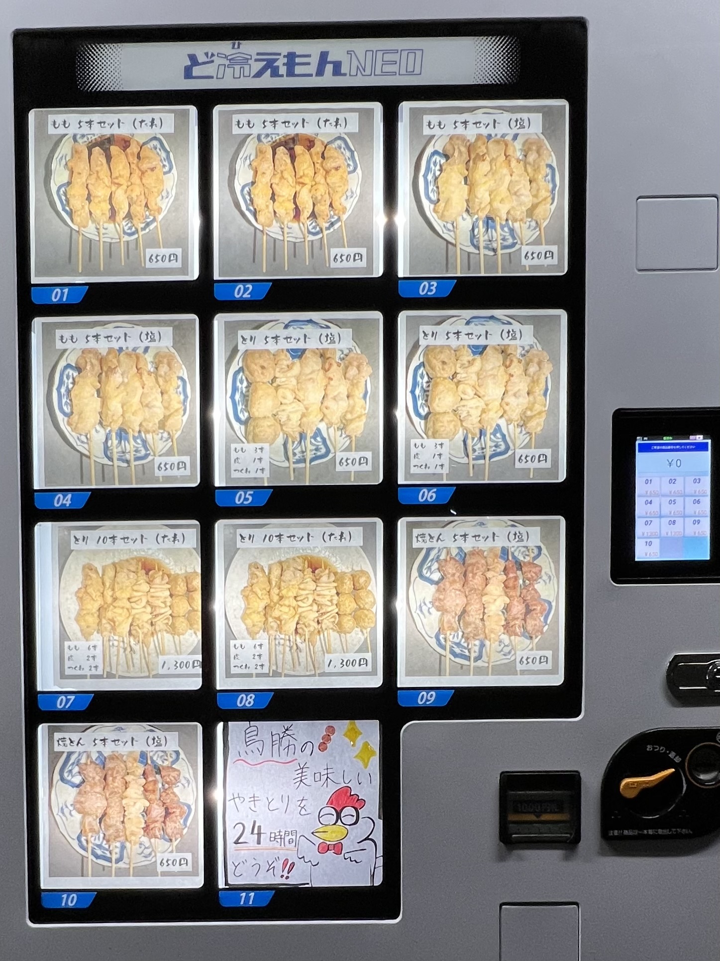 「おでん」など変わり種の自動販売機もありますが、「焼き鳥」って珍しい気がします。