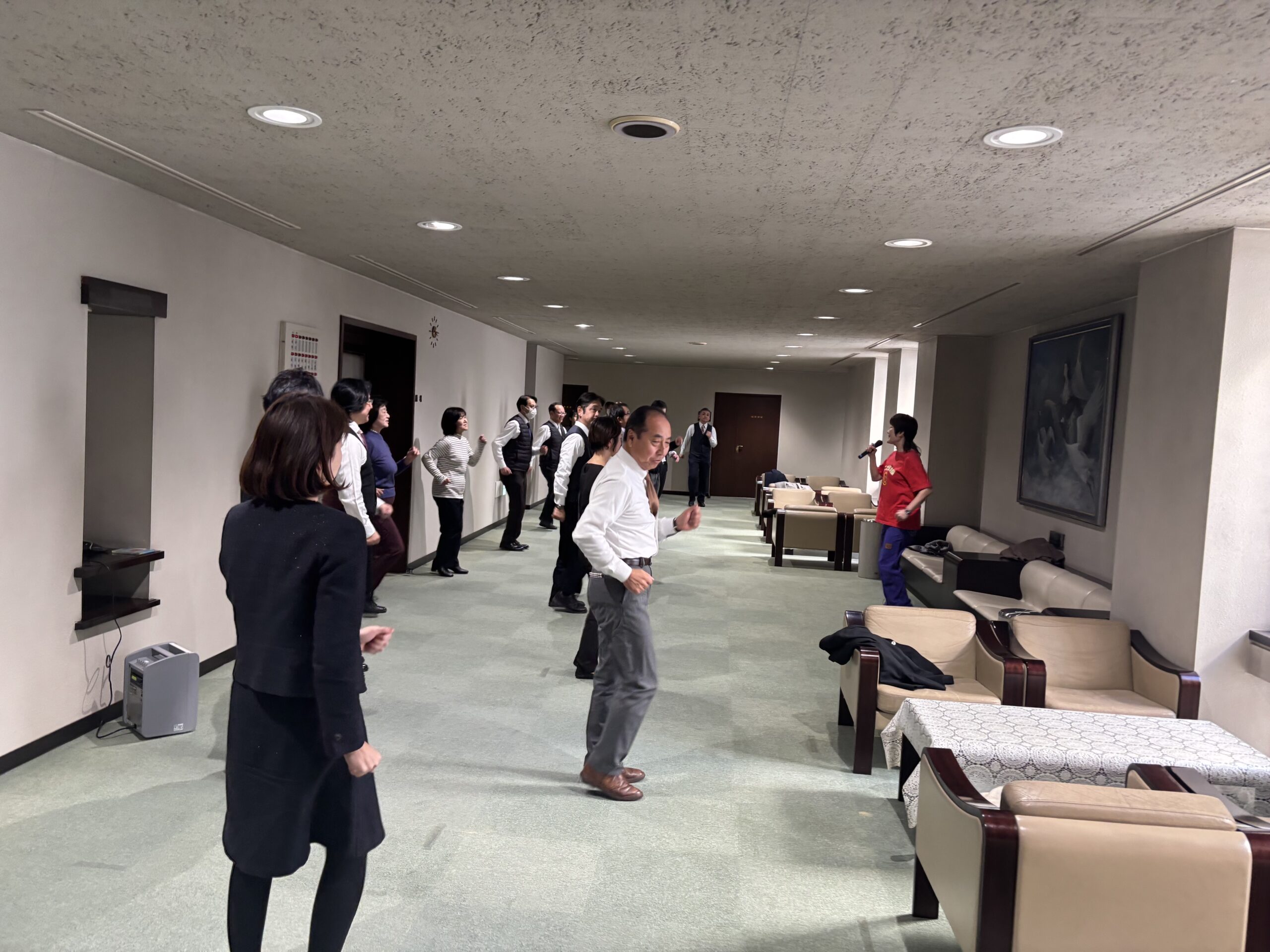 そして、最後は毎日の健康づくりのために、子どもから大人までどなたでも楽しく簡単に行える市のオリジナル健康体操である「こだ健体操」のレクチャーを受けました。