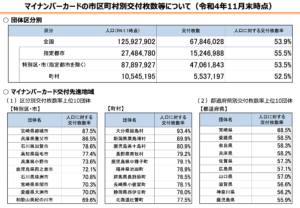 今年の5月1日時点で44.0%だった全国のマイナンバーカードの普及率が11月末には53.9%と、この7ヶ月間で約10ポイントも伸びています。