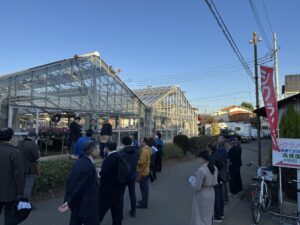 12月2日、小平市の野菜・切花生産農家と花苗生産農家2ヶ所の圃場の視察研修会がありました。