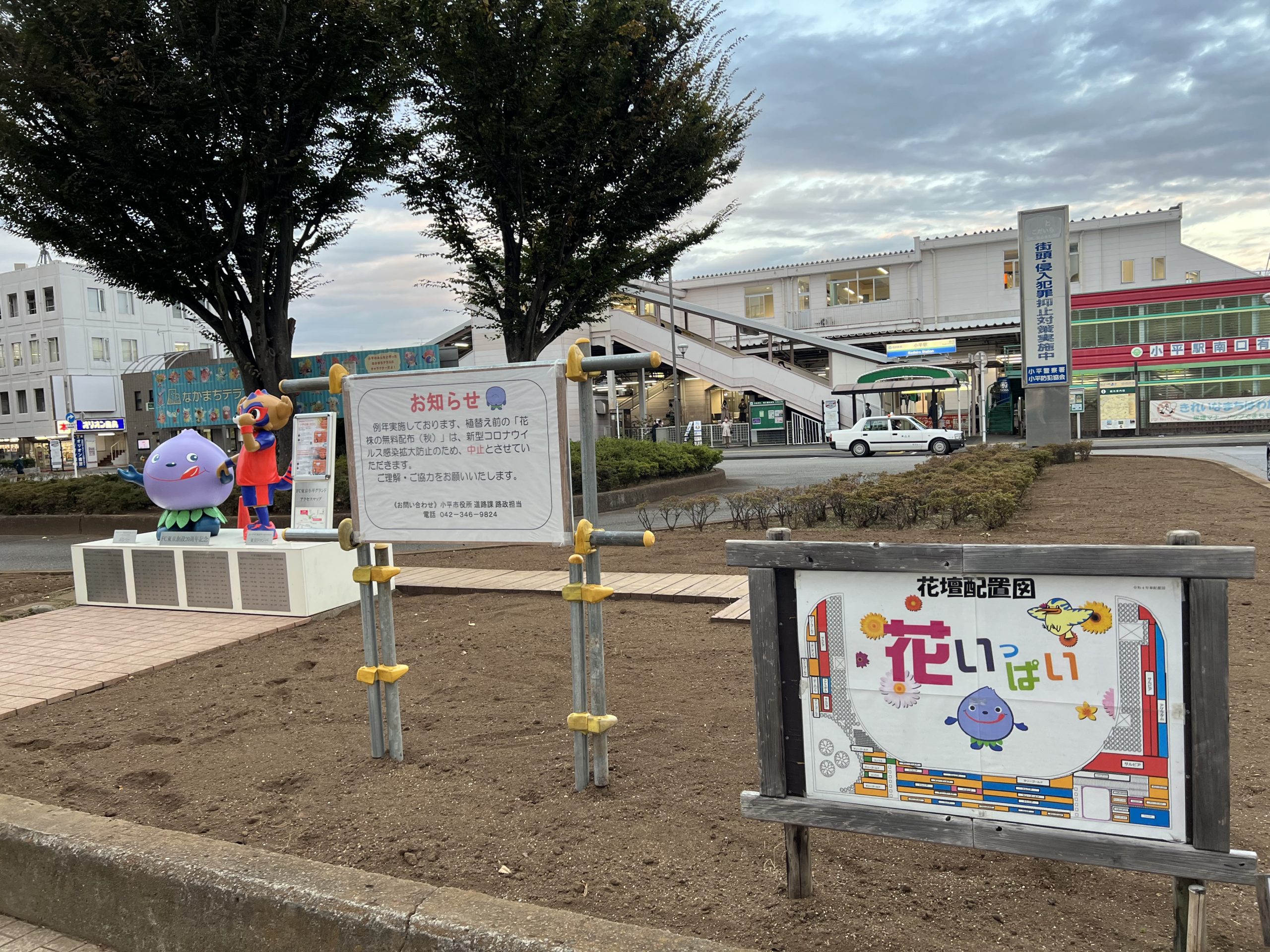 小平駅南口ロータリーにある花壇は平成24年5月12日(土)、13日(日)に開催した「第55回全日本花いっぱい小平大会」を盛り上げるためのシンボル花壇として平成23年11月26日(土)に造られました。