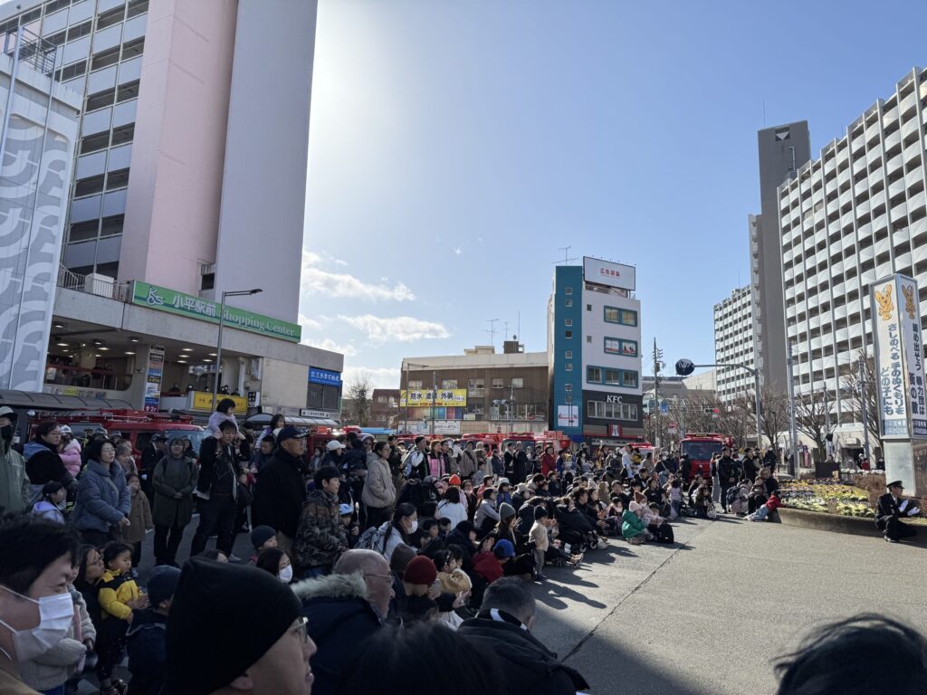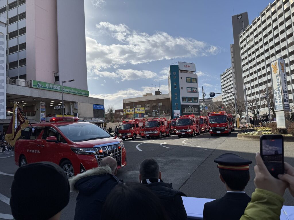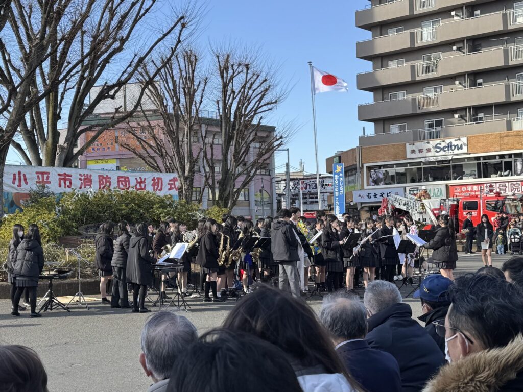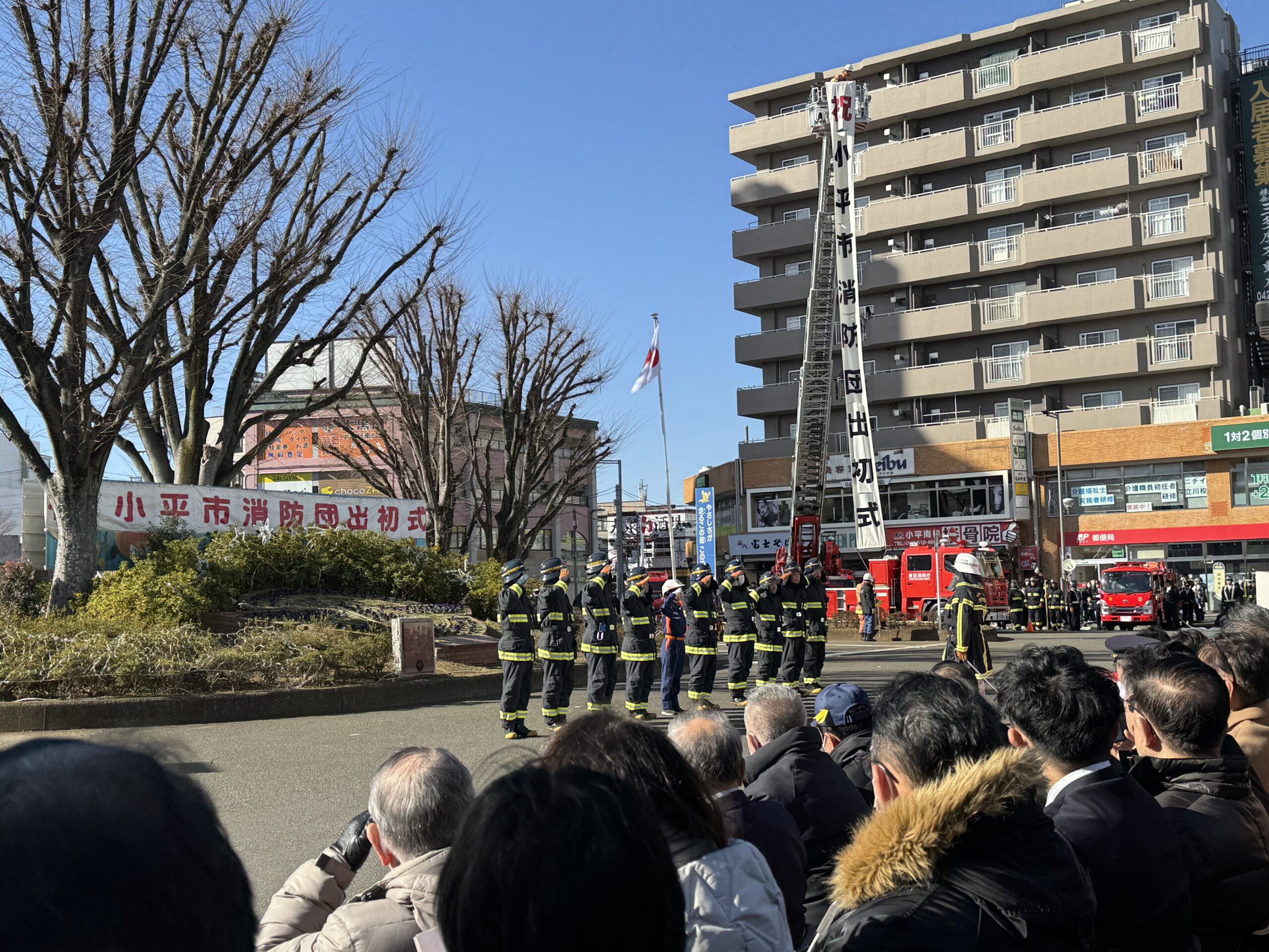 1月11日、小平駅南口ロータリーにて、小平市消防団出初式が行われました。